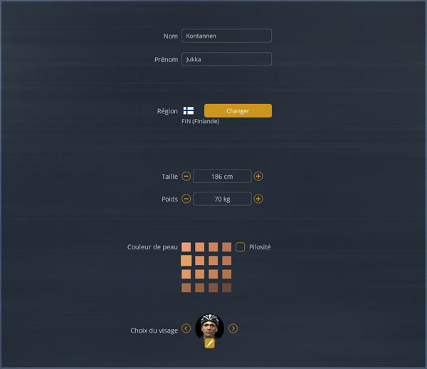 The only parameters that influence the starting attributes are found on the "Creation of your rider (2/3)" page when you choose the main and secondary axes. The final attributes are those to be found in the column on the right.