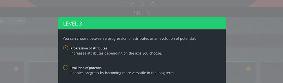 - a choice of enhanced attributes or potential (at each level in the beginning and less regularly thereafter).